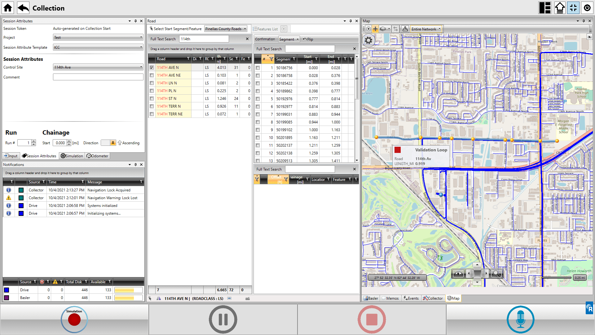 모든 하위 시스템의 경고 및 오류는 중요한 메시지를 음성으로 읽어주는 단일 알림 창으로 스트리밍되어 문제를 파악할 수 있습니다. 실시간 QC는 GPS, DMI, Ladybug 카메라, Basler 카메라, LCMS, 네트워크 연결, USB 연결, ADAS 상태, 수집기 서비스, 저장 공간 등을 모니터링합니다. 수집된 데이터에는 해시 스탬프가 기록되어 파일 전송 중 데이터 손상을 감지할 수 있습니다.