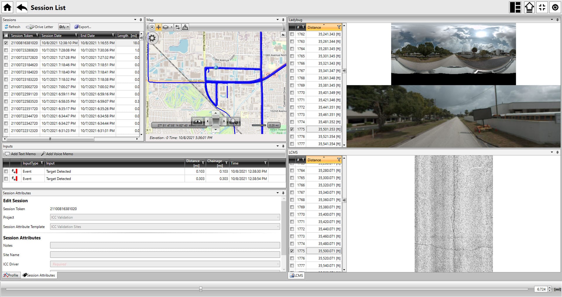수집된 데이터를 빠르게 검색이 가능합니다. 도로 이미지 품질을 검토하고, 지도에서 운전 경로를 확인하고, 센서 데이터 및 이벤트를 보고, 세션 속성을 편집합니다. 각 실행에서 발생할 수 있는 모든 오류와 알림을 조회하여 재실행이 필요한지 판단할 수 있습니다. 데이터가 사무실에 전송되기 전에 불필요한 항목을 지울 수 있습니다.